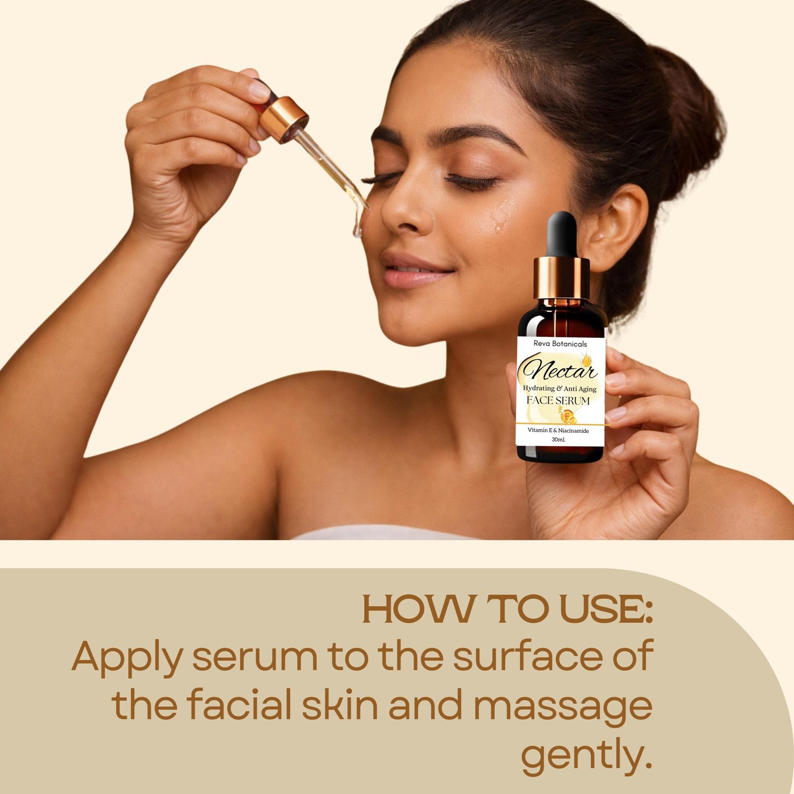 4. Gently Massage: Gently massage the serum onto your face and neck using upward and outward motions.